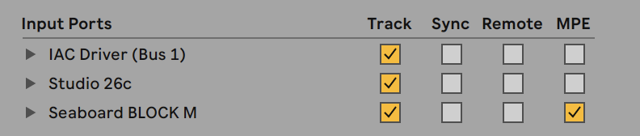 - 「Link, Tempo and MIDI」パネルで MPE のチェックボックスを有効にします