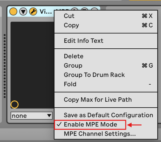 - デバイスメニューを右クリックし、「MPEモードを有効にする(Enable MPE Mode)」を選択します